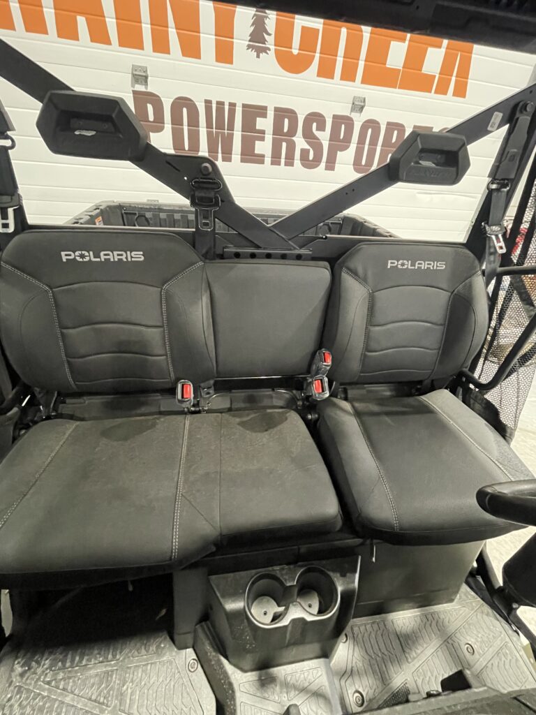 Premium bench-style seating enhances efficiency, comfort and support. Its seamless design allows you easily slide in and out of the vehicle as you transition through tasks. Adjustable positioning and angled seatbacks enable a more ergonomic fit, while added back bolsters deliver a more stable ride across rough terrain.