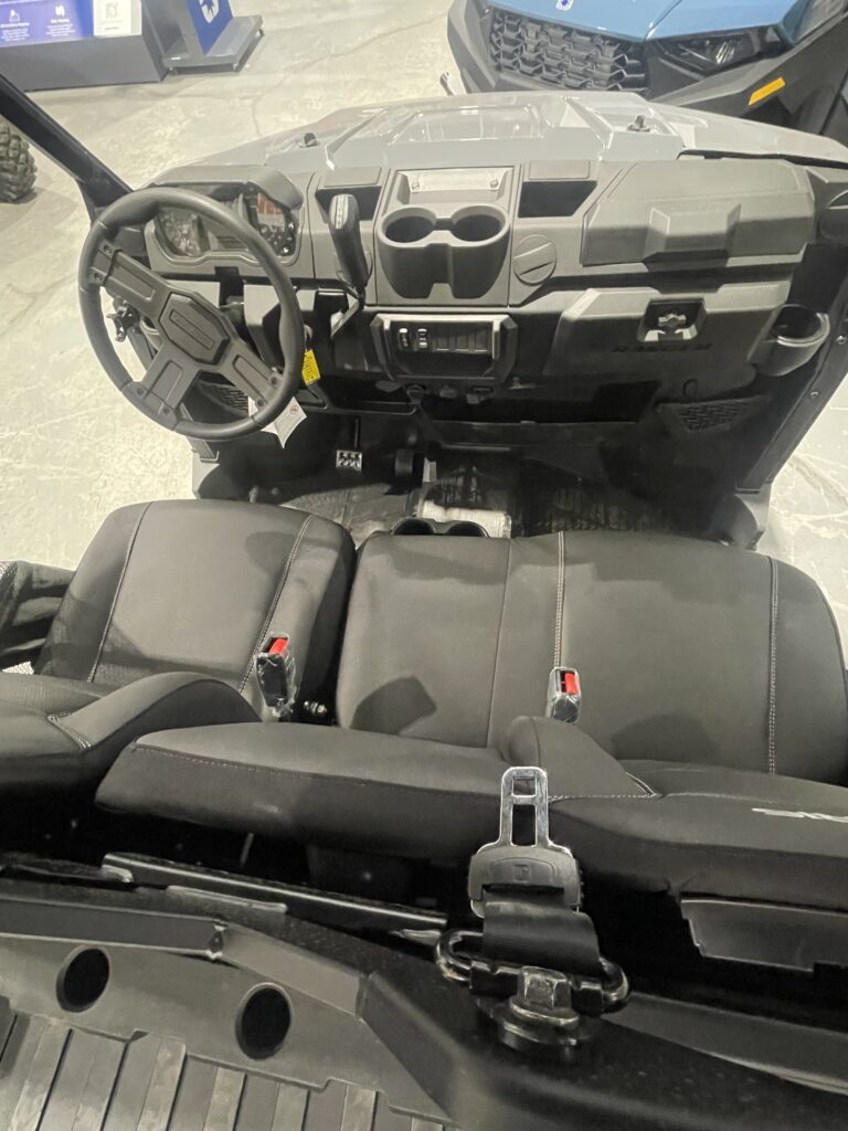 Premium bench-style seating enhances efficiency, comfort and support. Its seamless design allows you easily slide in and out of the vehicle as you transition through tasks. Adjustable positioning and angled seatbacks enable a more ergonomic fit, while added back bolsters deliver a more stable ride across rough terrain.